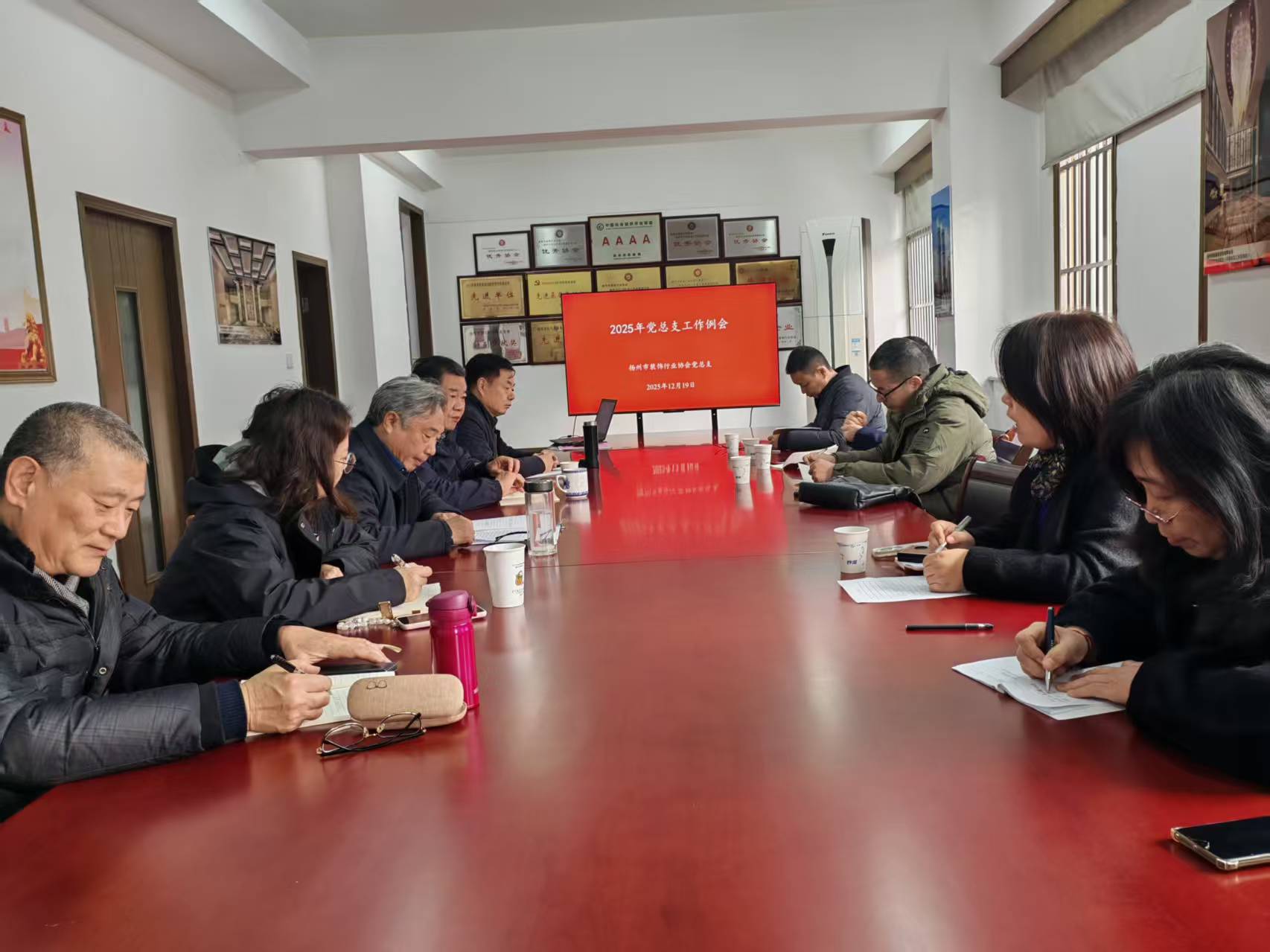 2025 年 12 月 19 日下午,扬州市装饰行业协会党总支工作例会在协会二楼会议室隆重召开。会议紧扣党建工作核心任务,总结过往成效、查摆存在问题、谋划未来发展,为协会党建与行业发展深度融合筑牢根基。