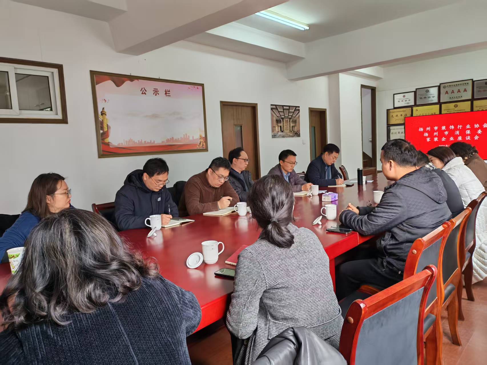 2026年1月29日下午,扬州市装饰行业协会与扬州市消费者权益保护委员会联合主办的扬州家装企业座谈会在市装协会议室顺利召开。会议聚焦行业规范发展与消费者权益保护核心议题,汇聚政企多方力量共商解决方案,为扬州家装行业高质量发展注入新动能。